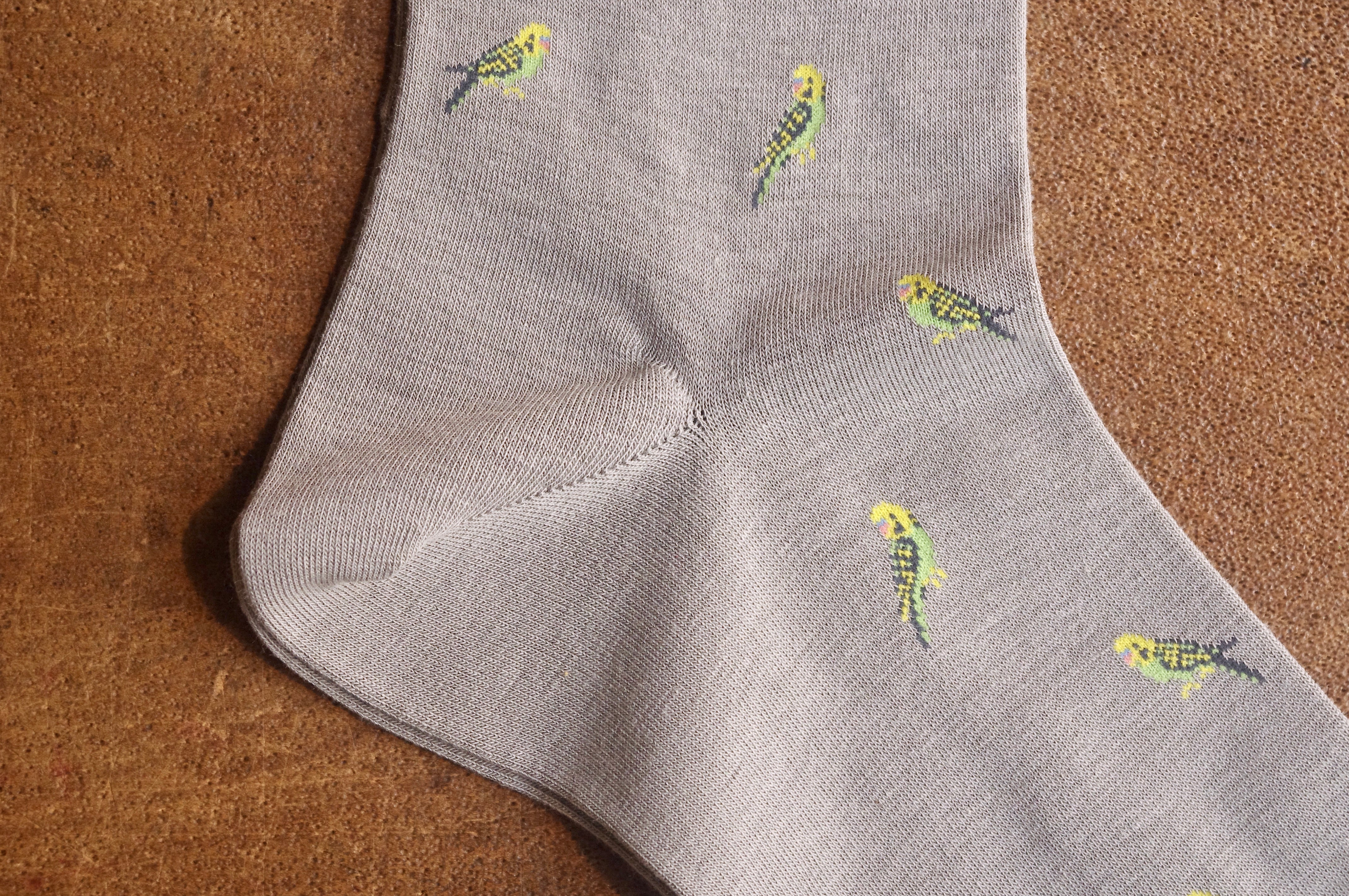 春夏シーズンに最適で、カラフルなインコが可愛い1足です。